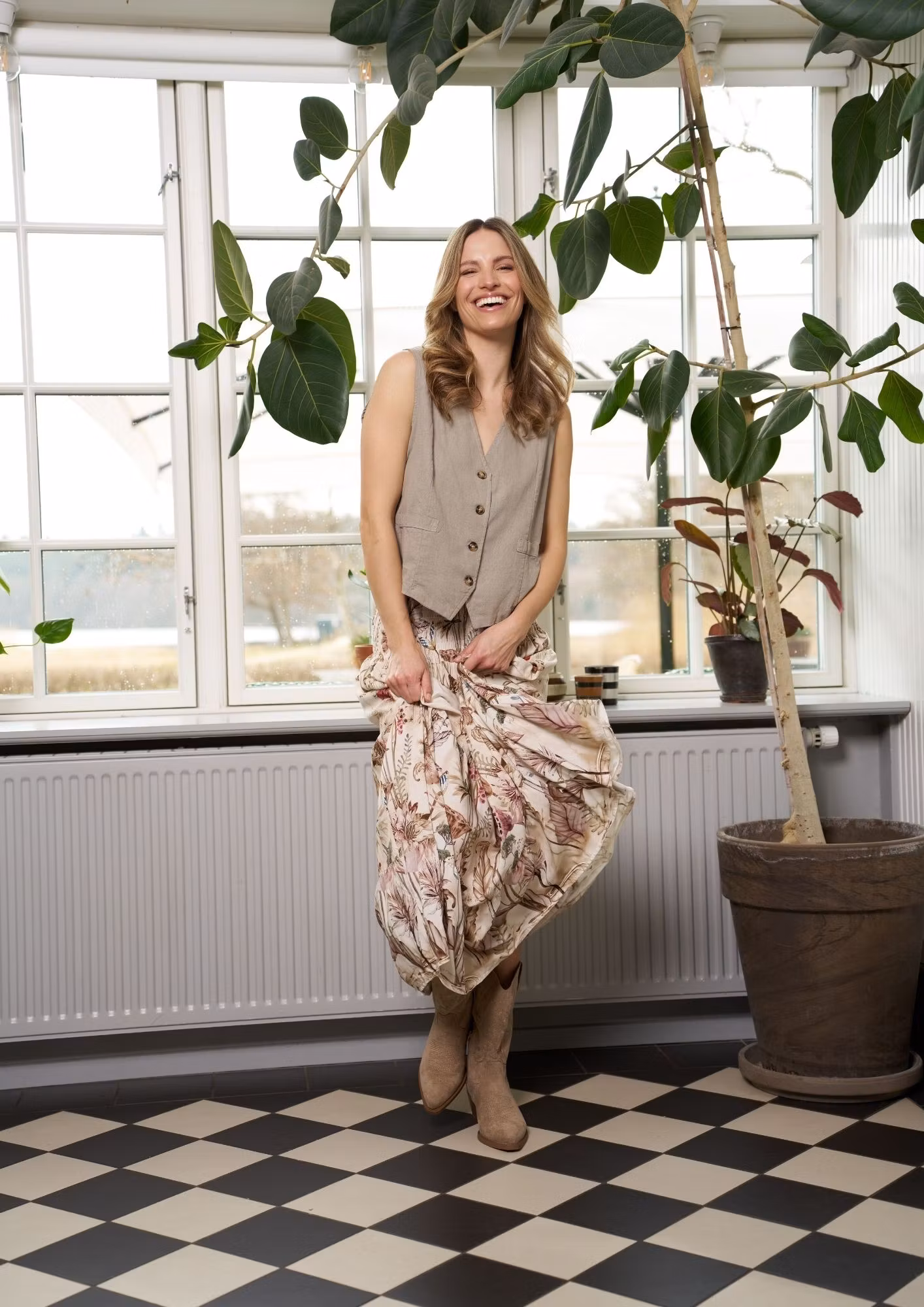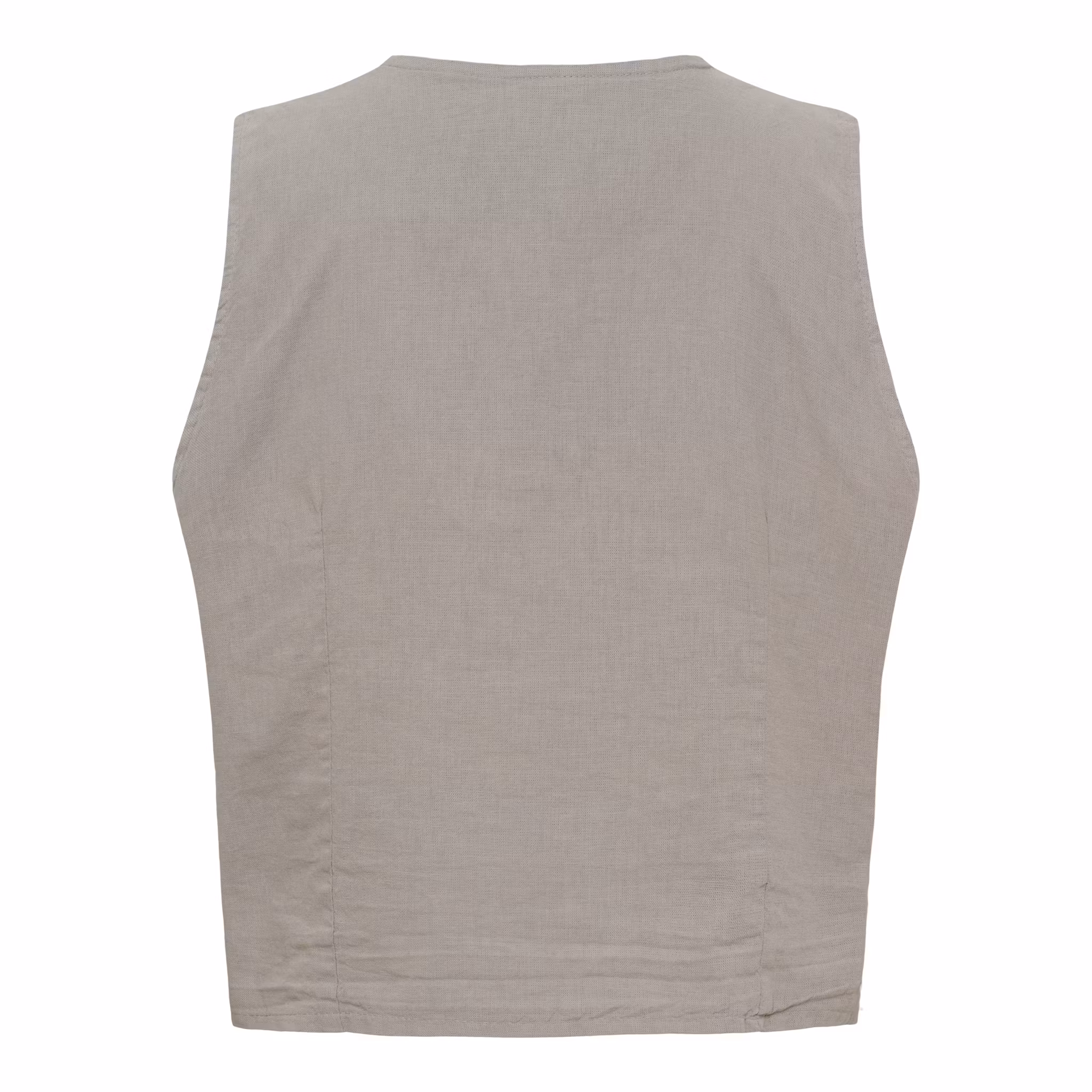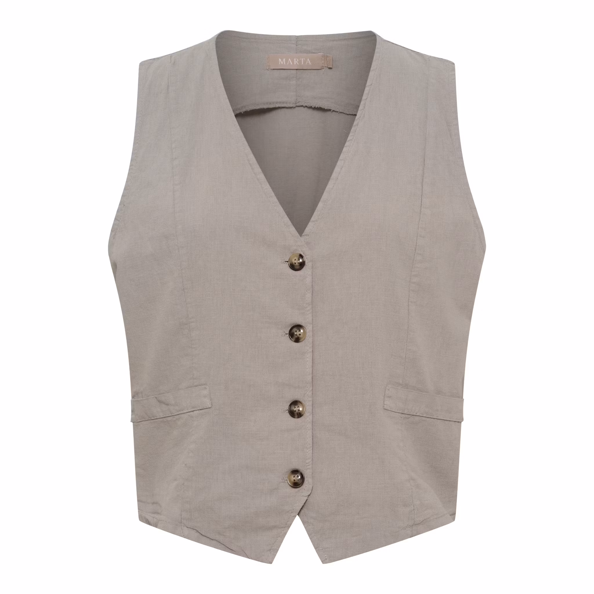 En stilren väst i en mjuk och naturlig bomulls- och linneblandning. Modellen har en fin V-ringning och knäppning framtill som ger ett klassiskt men avslappnat uttryck. Lika fin att bära som den är, eller lager på lager över en skjorta eller blus.